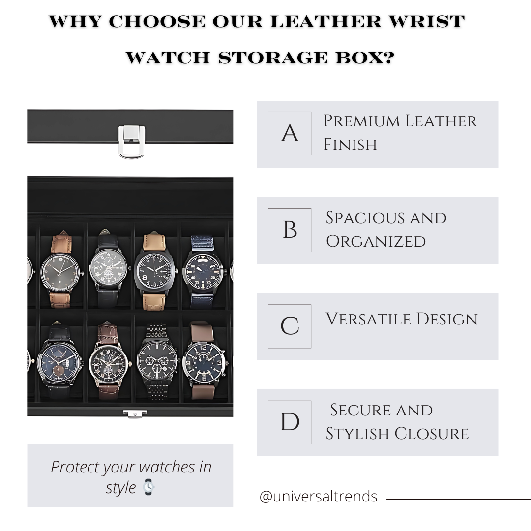 🕰️ Store Your Watches In Style : Protect and showcase your watch collection with the Leather Wrist Watch Storage Box, the perfect combination of elegance, organization, and durability. Designed for watch enthusiasts and collectors, this storage box is a must-have for keeping your timepieces safe and beautifully displayed.