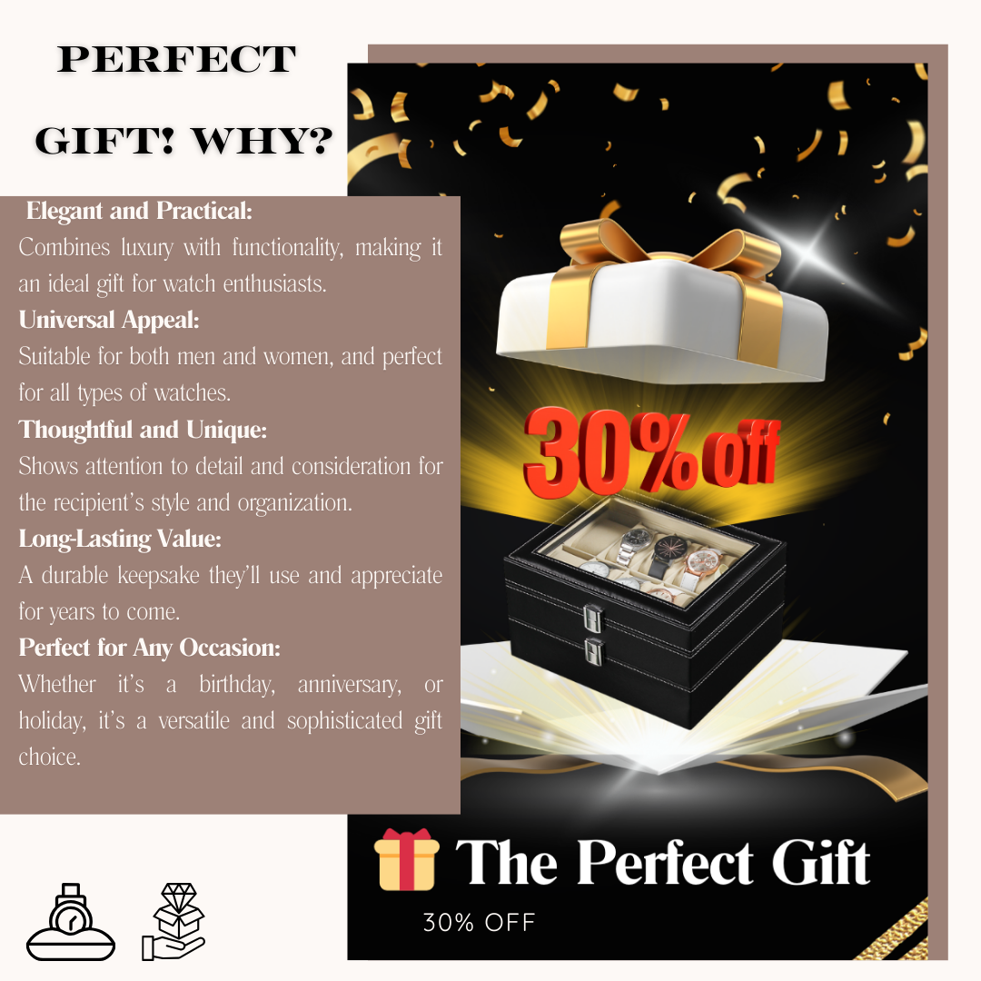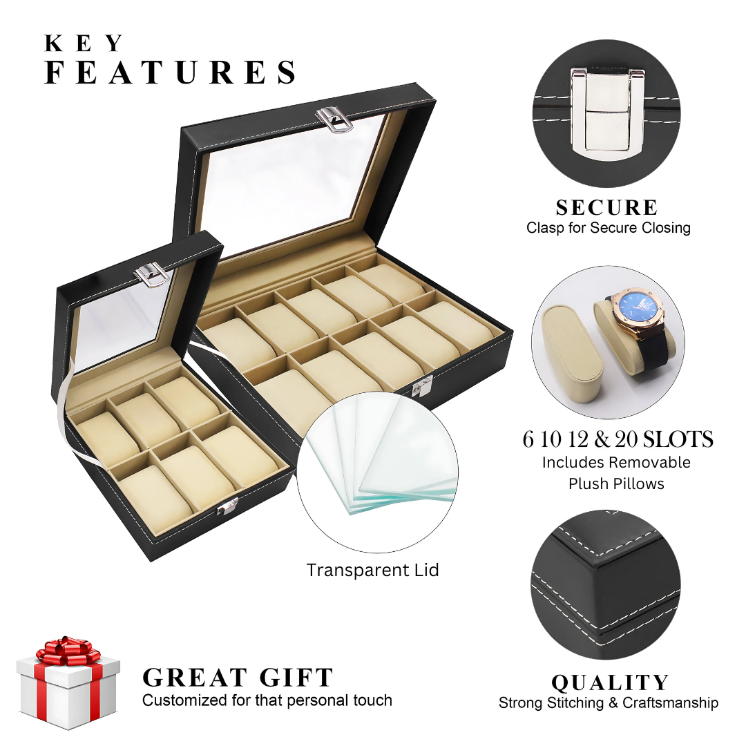 🎁 The Perfect Gift For Every Watch Enthusiast : A thoughtful and practical gift for any man who loves his watch collection. For anyone who treasures their watch collection, it offers safe, stylish organization with multiple slot options, a clear glass-top for easy viewing, and a luxurious PU leather finish that enhances the experience of owning a watch collection.
