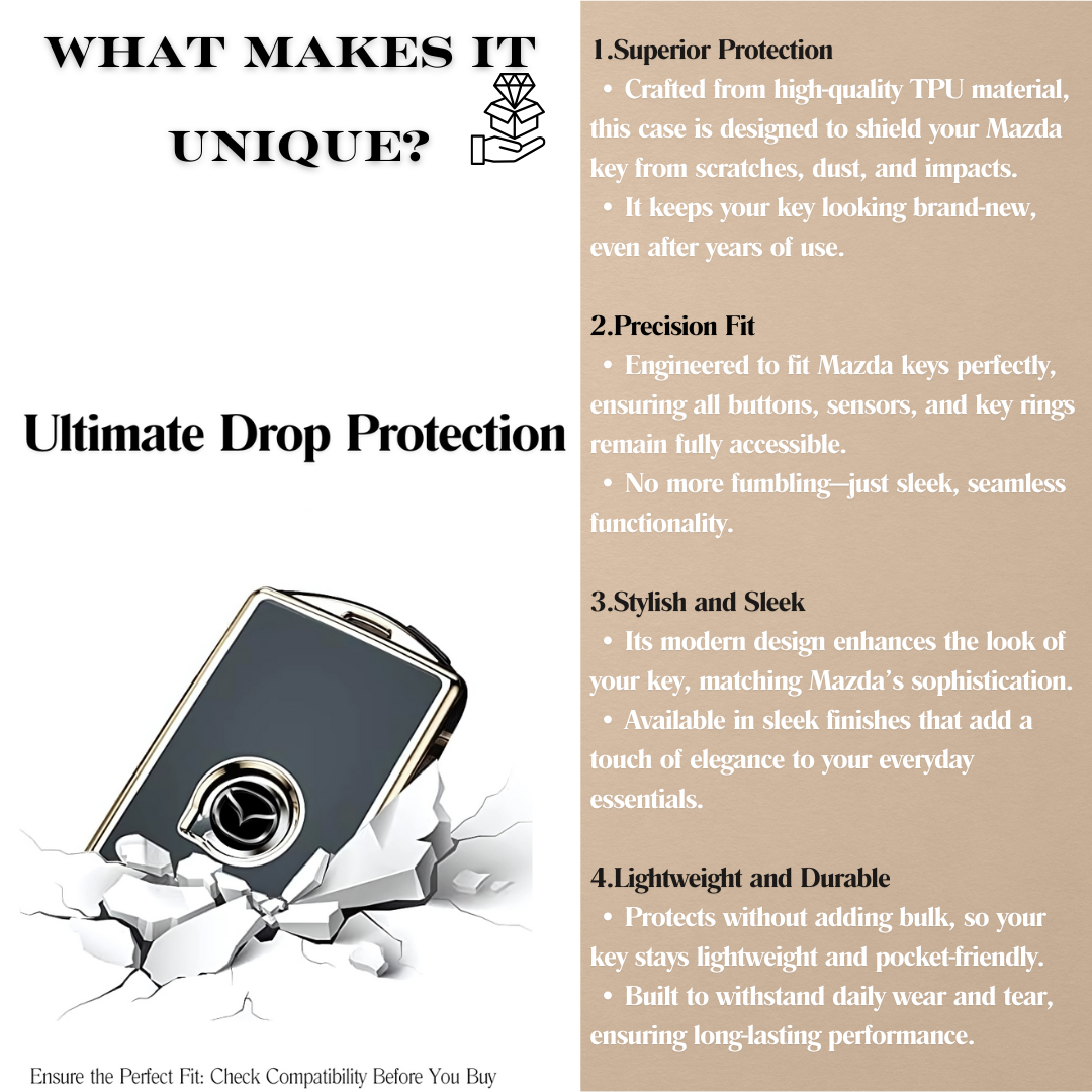 🚗 Stylish Protection for Your Key : This stylish TPU case cover provides essential protection for your car remote, preventing scratches and damage from everyday wear. Not only does it keep your key looking like new, but its sleek design also adds a touch of elegance, making your car remote look as polished as the vehicle it belongs to. It’s the perfect solution for keeping your Mazda key safe, stylish, and in top condition.